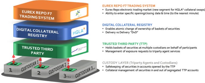 the Deutsche Börse-owned Trusted Third Party (TTP) entity which connects the custodians/tri-party agents to the digital collateral registry.